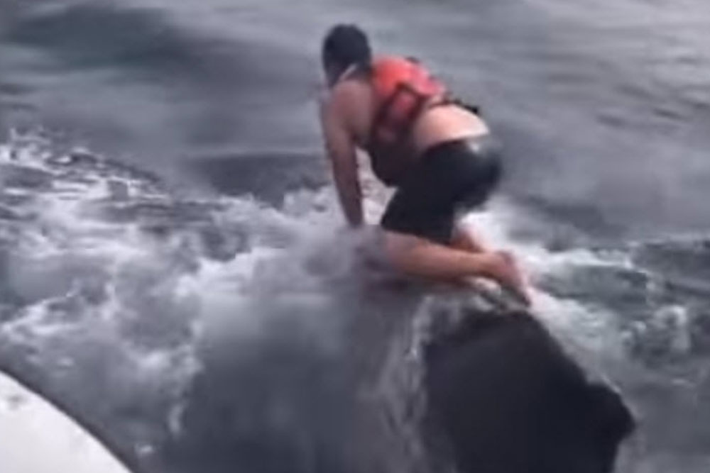 Рыбак прыгнул на кита и спас ему жизнь