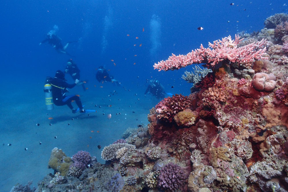 Уже у самого побережья, спустившись под воду с маской и трубкой, можно погрузиться в диковинный красочный мир кораллов, морских ежей, губок, многочисленных рыб разной величины и богатых оттенков. Прибрежная полоса коралловых рифов тянется почти на 2 тысячи километров.